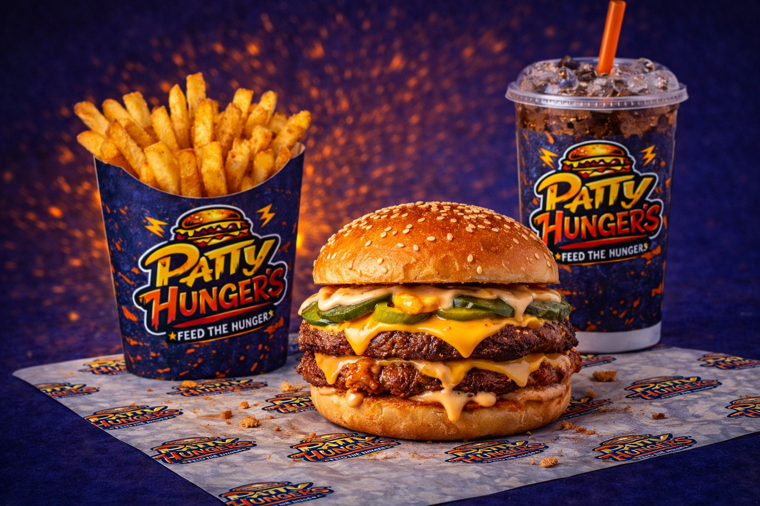 Sometimes, you just crave the classics. The Burger Combo at PattyHungers is our go-to, everyday meal deal designed to Feed the Hunger with the perfect holy trinity of takeaway: a premium burger, hot crispy fries, and a refreshing cold drink. Delivered fresh and fast from our premium cloud kitchen, it’s everything you need for a satisfying lunch or an easy evening feast.